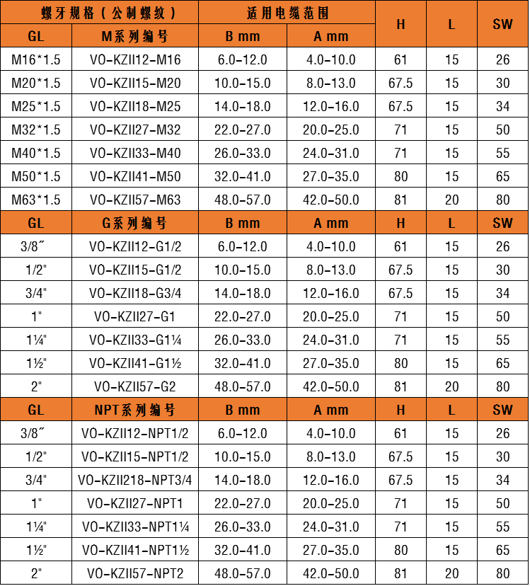 產(chǎn)品名稱:VO-KZII雙密封鎧裝電纜接頭