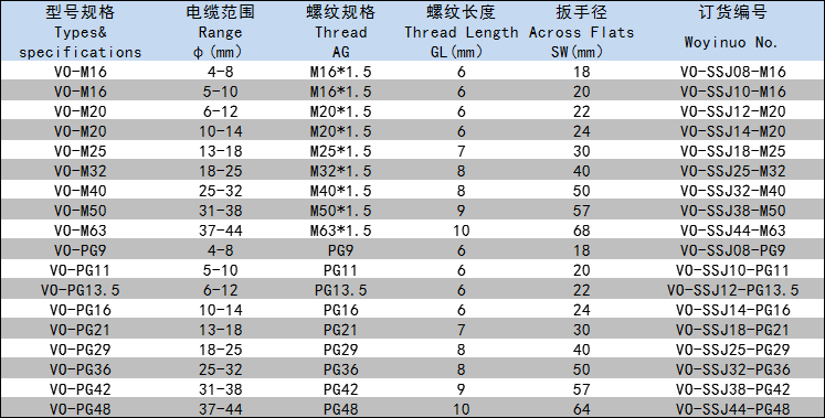 產(chǎn)品名稱:VO-SSJ雙鎖緊電纜接頭