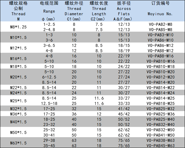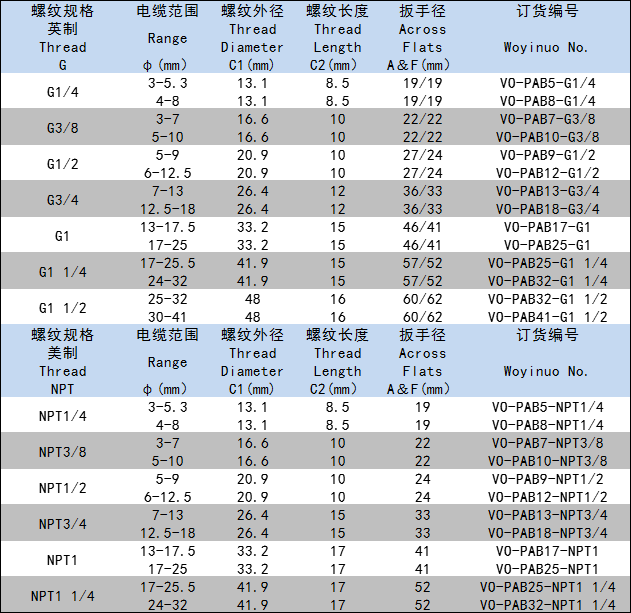 螺紋規(guī)格:公制(M)英制(G)美制(NPT)德制(PG)