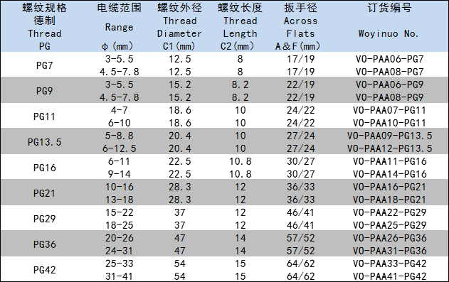 使用方法:VO-PAA型尼龍電纜接頭是電纜的配套產(chǎn)品,接頭可將電纜鎖緊,另一端可接入設備箱體上,也可以根據(jù)選用螺紋,接入進出口為內(nèi)螺紋的電動設備上。